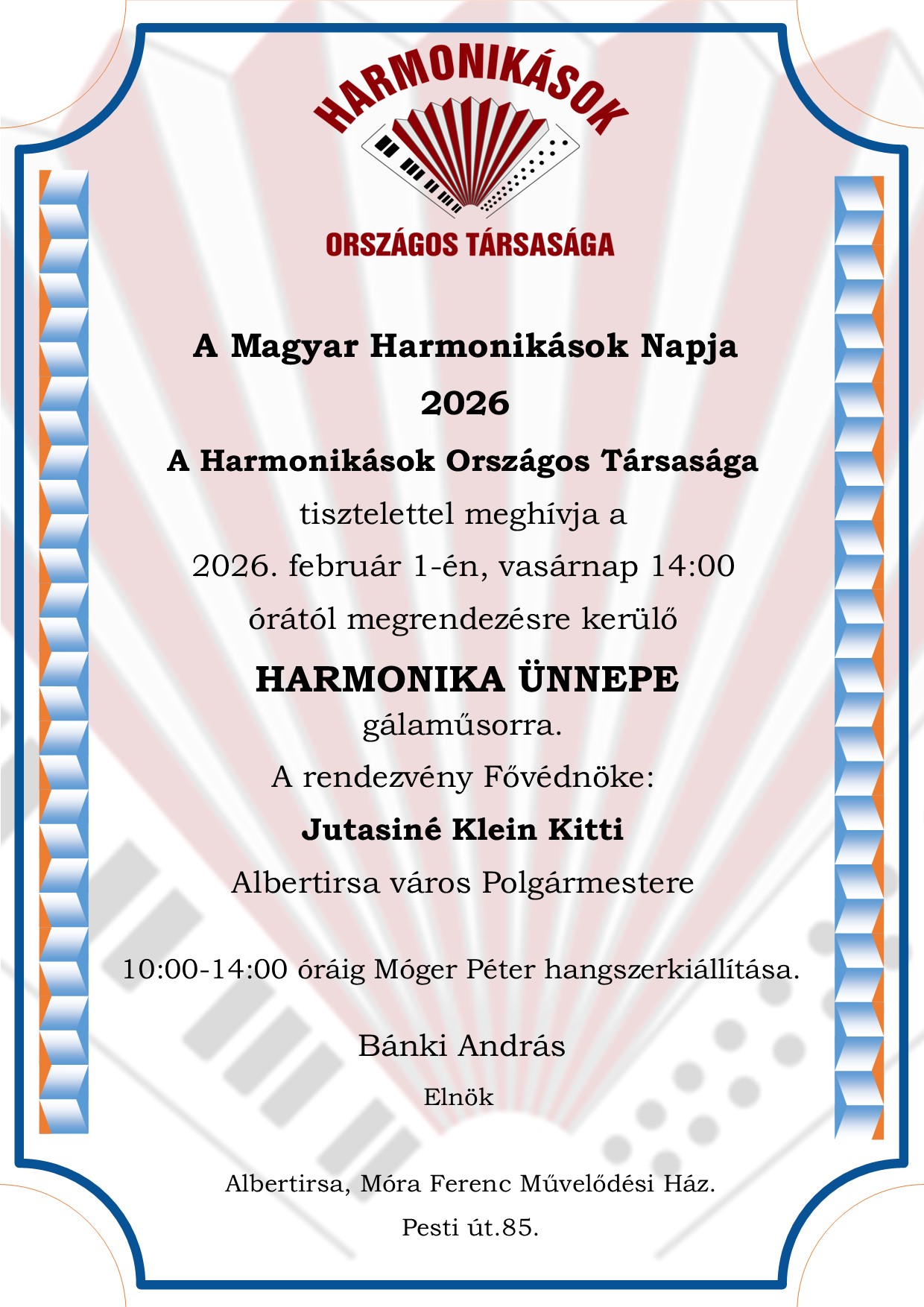 2022.február 6. A Magyar Harmonikások Napja Albertirsán a Móra Ferenc Művelődési Házban a Harmonika Ünnepe gálaműsorral …»